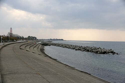 魚津ミラージュランドの近くから数キロほど、海岸沿いを通る道があります。通称「しんきろうロード」、名前のとおり蜃気楼の観測や撮影に最適な道です。 砂浜は無くコンクリートの岸壁なので海水浴には向きませんが、穏やかに海を眺めながら通ることができる…