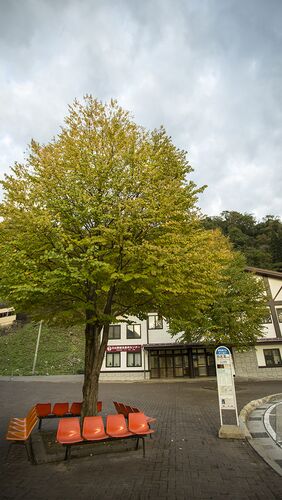 これから載せる3枚の写真は、富山県20km範囲で全て10月18日に撮影したものです。 富山県を代表する観光地、立山黒部アルペンルートは多様な秋の風景を楽しめるシーズンとなっています。立山駅(標高475m)入口にあるカツラの木は、色づき始めたところ。 黒部…